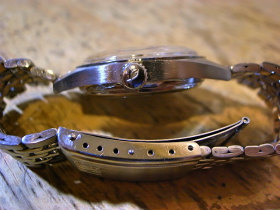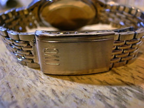 竜頭には防水時計の魚のマークが入っています。