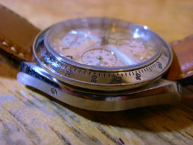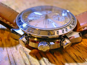 クロノグラフ腕時計のボタンレイアウトが右側で